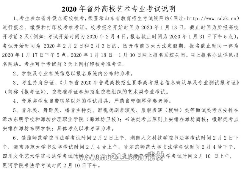 2020年省外高校藝術(shù)類專業(yè)考試濰坊考區(qū)安排表