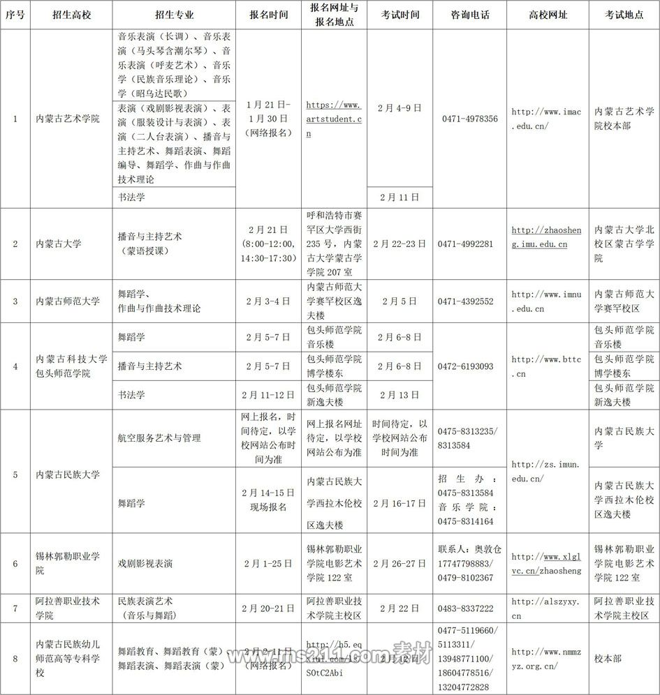 附件:2020年區(qū)內(nèi)高校藝術(shù)類專業(yè)校考安排