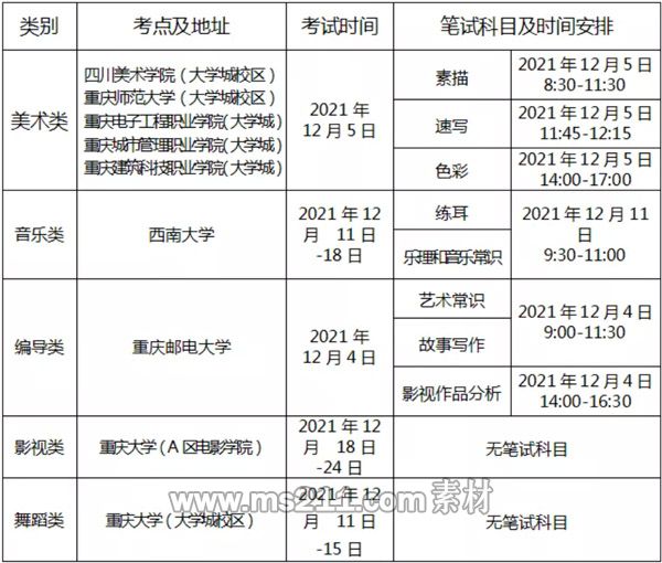 市外高校經(jīng)批準(zhǔn)在渝設(shè)點(diǎn)組織專業(yè)校考的,考點(diǎn)統(tǒng)一設(shè)置在重慶文化藝術(shù)職業(yè)學(xué)院(巴南校區(qū)),地址:重慶市巴南區(qū)尚文大道887號(hào),聯(lián)系電話023-62333136;62335791;62330330。美術(shù)類專業(yè)可在四川美術(shù)學(xué)院設(shè)置考點(diǎn),由招生院校與四川美術(shù)學(xué)院自行商定。