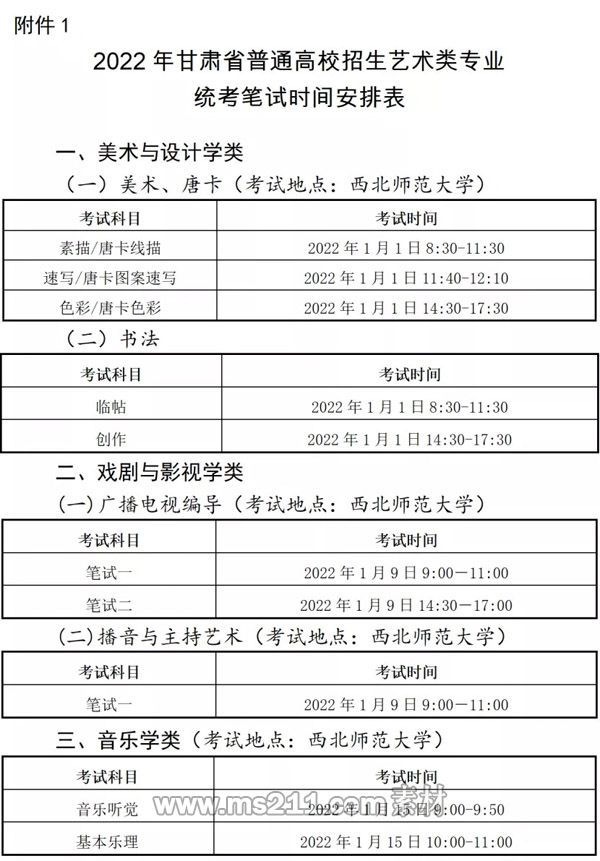 聲樂、器樂、作曲專業(yè)筆試時間為2022年1月15日上午,面試(作曲筆試)時間為1月15日下午至1月19日,地點(diǎn)在西北師范大學(xué)。