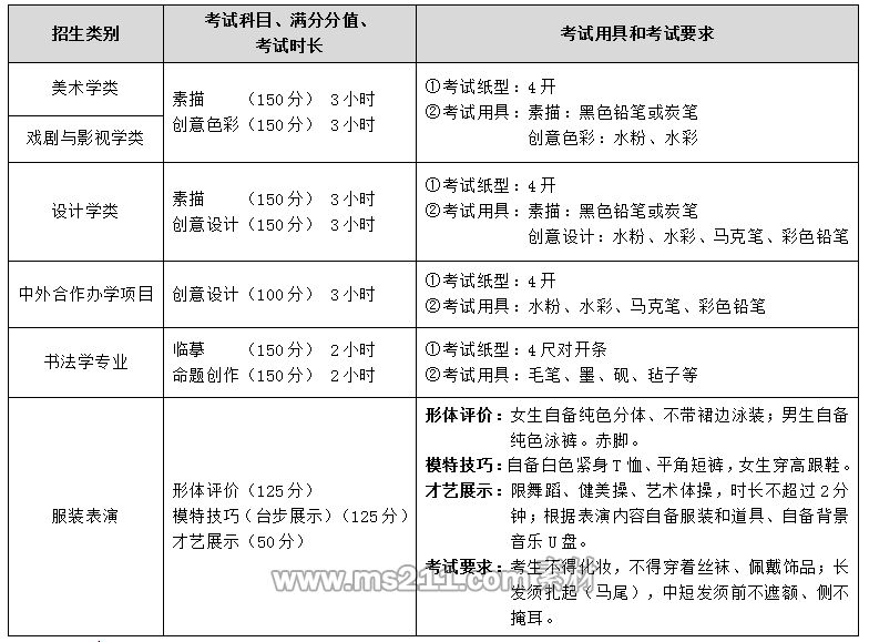 1、考生只能在美術學類、戲劇與影視學類、設計學類、中外合作辦學項目、書法學專業(yè)、服裝表演中選擇一類報考,不能兼報。