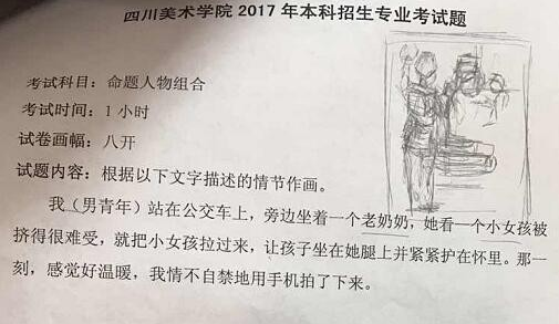 速寫考題:我(男青年)站在公交車上,旁邊坐著一個老奶奶,她看一個小女孩被擠得很難受,就把小女孩拉過來,讓孩子坐在她腿上并緊緊護在懷里,那一刻,感覺好溫暖,我情不自禁地用手機拍了下來。