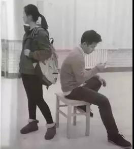 速寫考題:一站姿女青年、一坐姿男青年,兩人背靠背;男青年臉朝右,坐在凳子上,右手拿著手機(jī),眼睛盯著手機(jī);女青年左肩背一個(gè)挎包,扎馬尾辮,臉朝左。