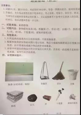色彩考題及圖片:1塊深色襯布,1塊淺色神布,酒瓶1個(gè),陶罐1個(gè),白菜1個(gè),白盤1個(gè),不銹鋼鍋1個(gè),不銹鋼勺1個(gè),其他蔬菜若干。