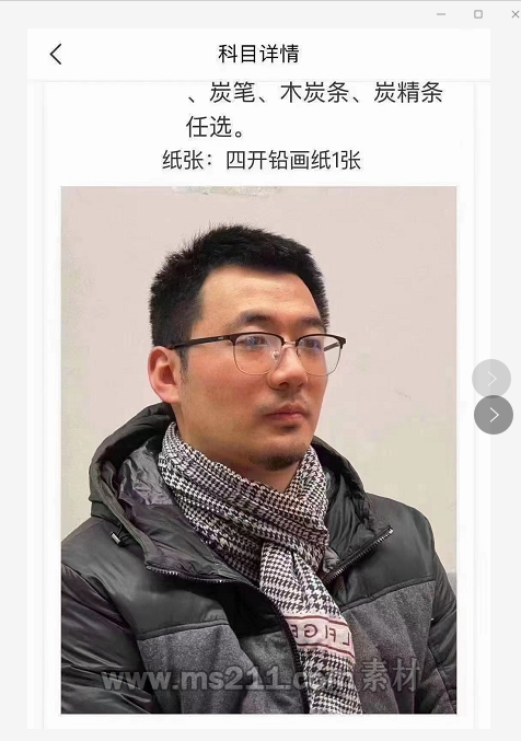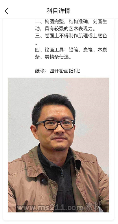 考試題目:人物頭像素描,提供人物彩色照片,戴眼鏡的男老師
