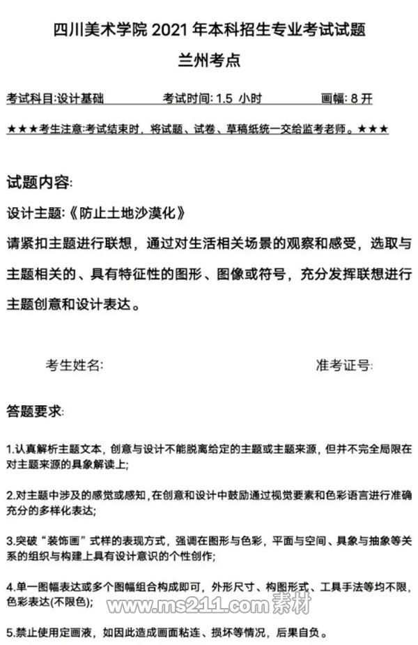 四川美術(shù)學(xué)院2021年第二場(chǎng)考試于2月26日在蘭州、長(zhǎng)沙、鄭州舉行,具體考題如下: