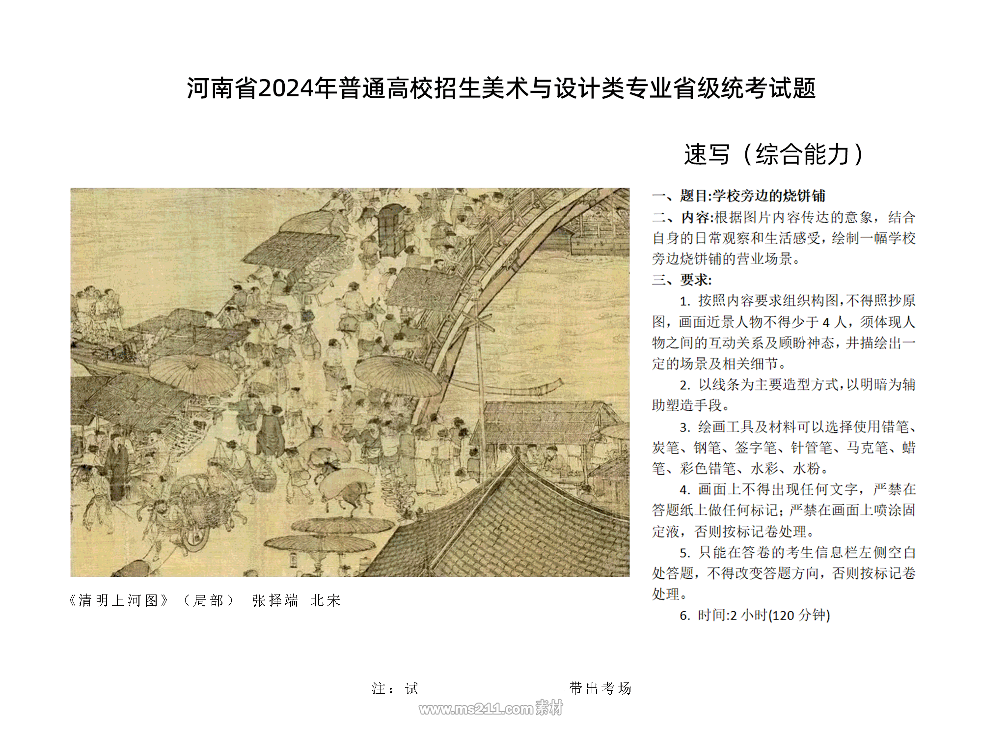 今年變化最大的是速寫(xiě)(綜合能力)科目,往年只考30分鐘,今年考試時(shí)長(zhǎng)達(dá)到120分鐘。