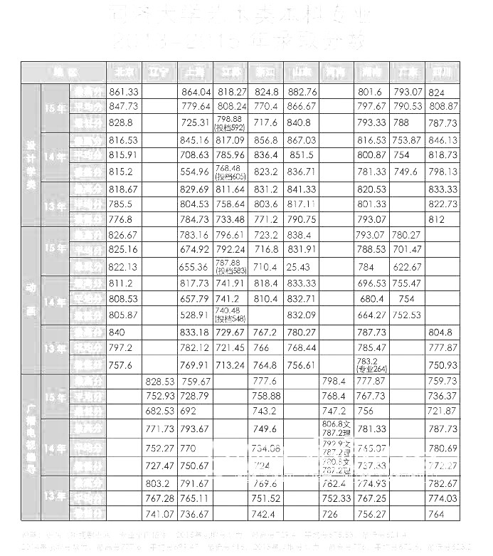 2013-2015年同濟(jì)大學(xué)藝術(shù)類錄取分?jǐn)?shù)線