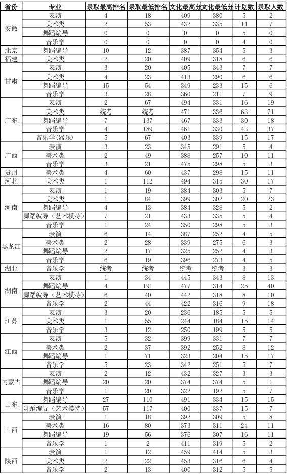 所有藝術(shù)類專業(yè)在規(guī)定計劃投放時必須分藝術(shù)文理的省份只招收藝術(shù)文,規(guī)定計劃不分藝術(shù)文理的省份則文理兼招。