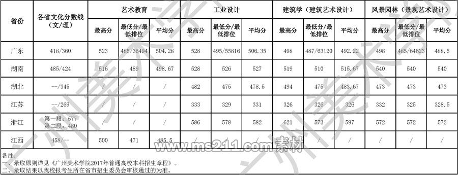 廣州美術(shù)學(xué)院2017年廣東省普通本科錄取最低控制分?jǐn)?shù)線