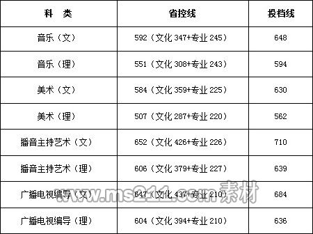 除上述情況外,其他考生按綜合成績(音樂學(xué)、播音與主持藝術(shù)專業(yè)綜合成績=專業(yè)成績×70%+文化成績×30%,廣播電視編導(dǎo)、美術(shù)類專業(yè)綜合成績=專業(yè)成績×60%+文化成績×40%)從高分到低分錄取,總分相同時,專業(yè)成績高者優(yōu)先錄取。
