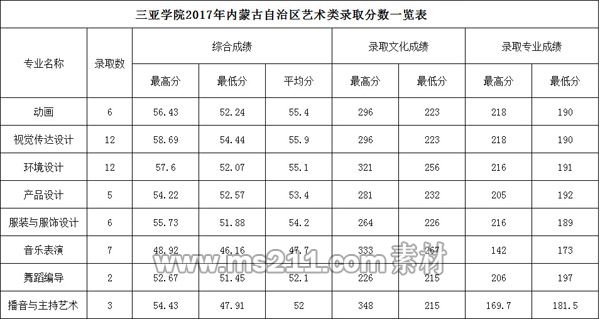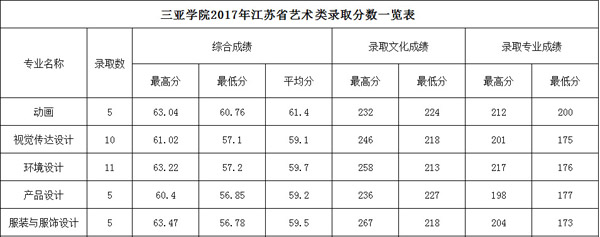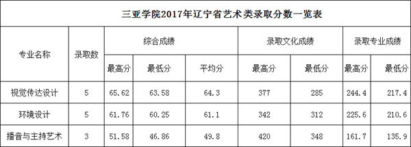 2017年三亞學(xué)院藝術(shù)類本科分省分專業(yè)錄取分?jǐn)?shù)線