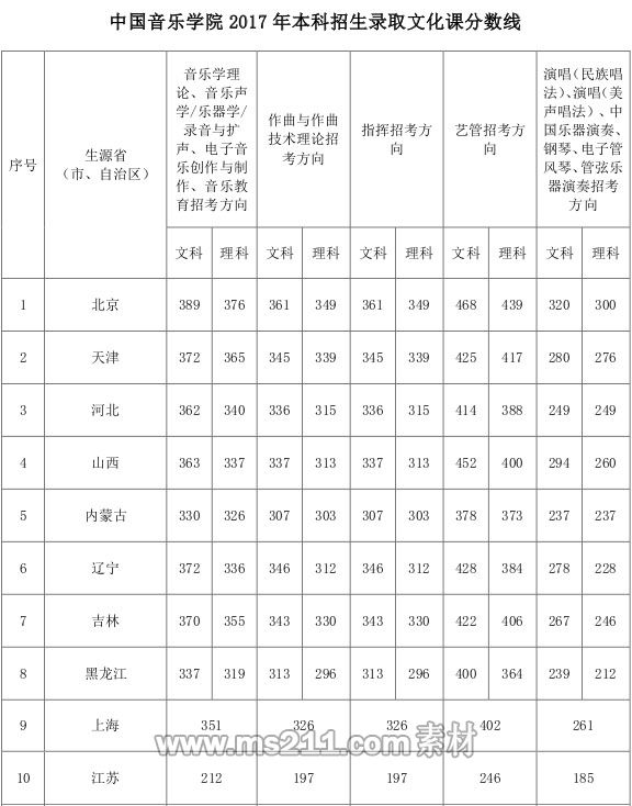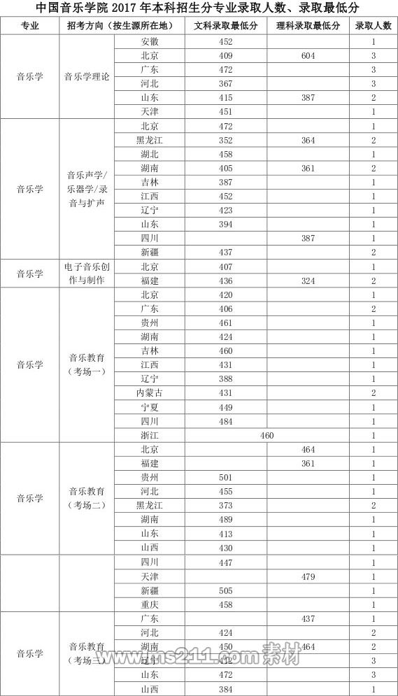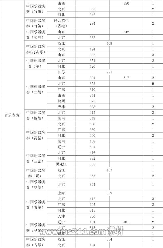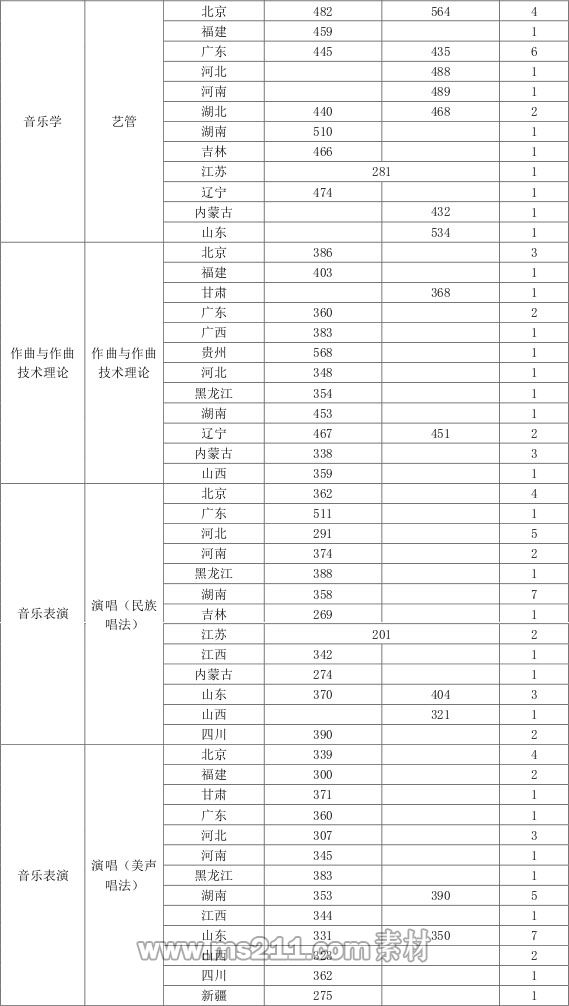 3、作曲與作曲技術(shù)理論、指揮等招考方向:錄取分?jǐn)?shù)線參照生源所在?。ㄊ?、自治區(qū))普通本科第一批次錄取控制分?jǐn)?shù)線的65%且不低于生源所在?。ㄊ?、自治區(qū))藝術(shù)類同科類本科專業(yè)錄取控制分?jǐn)?shù)線劃定。
