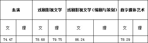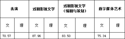二、表演、戲劇影視文學、戲劇影視文學(編劇與策劃)、數(shù)字媒體藝術(shù)專業(yè)錄取線