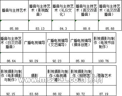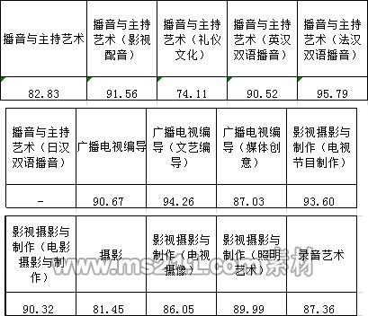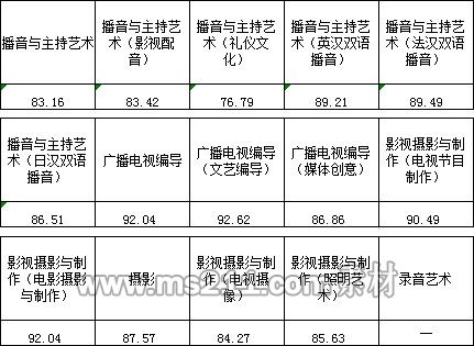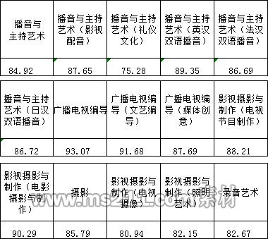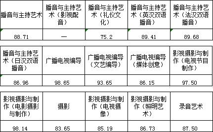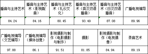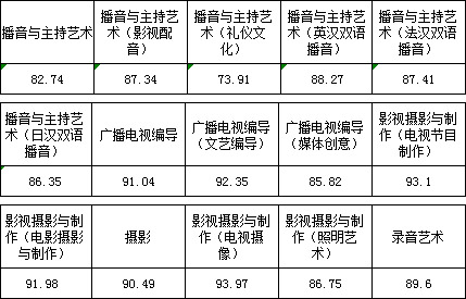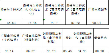 三、播音與主持藝術(shù)、廣播電視編導、影視攝影與制作、攝影、錄音藝術(shù)專業(yè)錄取線