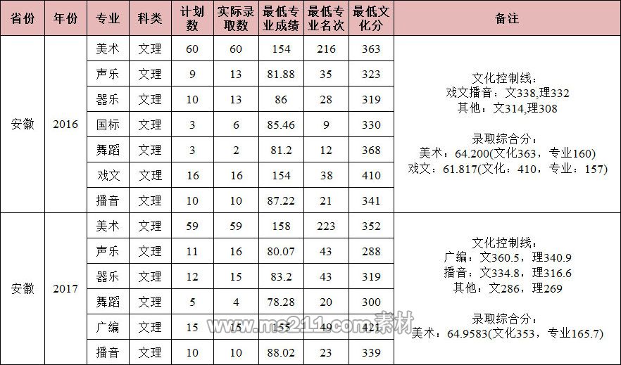 5、音樂學(聲樂)、音樂學(器樂)、音樂學(音樂科技)、舞蹈學、表演專業(yè)按專業(yè)成績分省按計劃從高分到低分錄取。