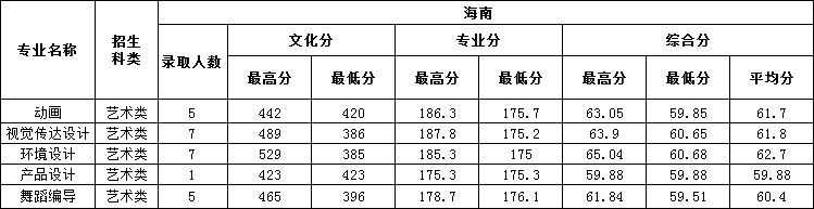 2018年三亞學(xué)院藝術(shù)類本科專業(yè)錄取分?jǐn)?shù)線