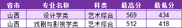 戲劇與影視學(xué)類(含動畫、影視攝影與制作)、設(shè)計學(xué)類(視覺傳達設(shè)計、環(huán)境設(shè)計、服裝與服飾設(shè)計)使用山西美術(shù)統(tǒng)考成績。依據(jù)文化課統(tǒng)考成績和專業(yè)成績之和,從高分到低分順序錄取。