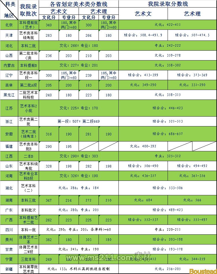 美術(shù)類(lèi)專(zhuān)業(yè)錄取時(shí)按設(shè)計(jì)學(xué)類(lèi)(含視覺(jué)傳達(dá)設(shè)計(jì)、環(huán)境設(shè)計(jì)、服裝與服飾設(shè)計(jì)、動(dòng)畫(huà)專(zhuān)業(yè))大類(lèi)錄取。省級(jí)專(zhuān)業(yè)統(tǒng)考成績(jī)須達(dá)到生源所在省(區(qū)、市)本科報(bào)考資格,同時(shí)高考文化課成績(jī)須達(dá)到生源所在?。▍^(qū)、市)藝術(shù)類(lèi)本科錄取投檔分?jǐn)?shù)線(xiàn)。根據(jù)分省招生計(jì)劃,按文化課成績(jī)由高到低錄取。如文化課成績(jī)相同時(shí)優(yōu)先錄取省級(jí)專(zhuān)業(yè)統(tǒng)考成績(jī)較高的考生。
