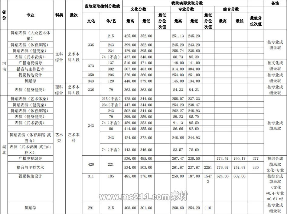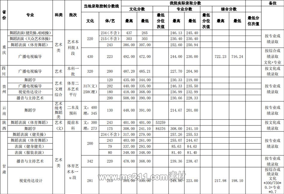根據(jù)我校2019年藝術(shù)類整體考試情況,確定我校各專業(yè)(招考方向)合格分?jǐn)?shù)線如下(舞蹈表演專業(yè)、表演專業(yè)不含即為直接取整數(shù)位,不計(jì)算小數(shù)點(diǎn)后一位四舍五入,未標(biāo)注則含小數(shù)點(diǎn)后一位四舍五入;播音與主持藝術(shù)專業(yè)合格線不按四舍五入處理):