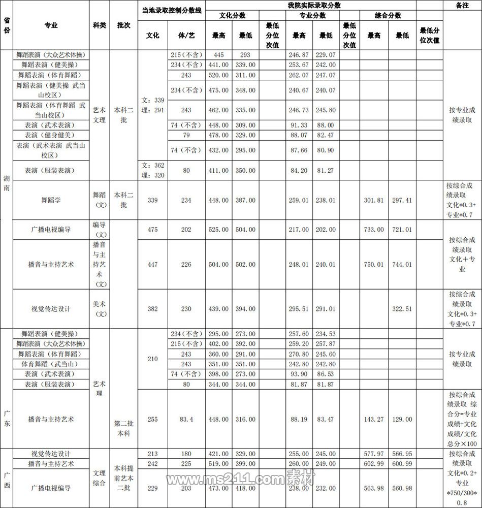 武漢體育學(xué)院2019年藝術(shù)類??己细窬€