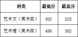 我校2019年本科普通批(美術(shù)類)計(jì)劃210人,滿計(jì)劃投檔210人,由于1個(gè)考生專業(yè)不服從調(diào)劑被退檔,本批次共錄取209人。藝術(shù)文綜合分最低分527分,最高分540分;藝術(shù)理綜合分最低分522分,最高分538分。生源質(zhì)量較往年進(jìn)一步提高,各專業(yè)錄取分?jǐn)?shù)如下: