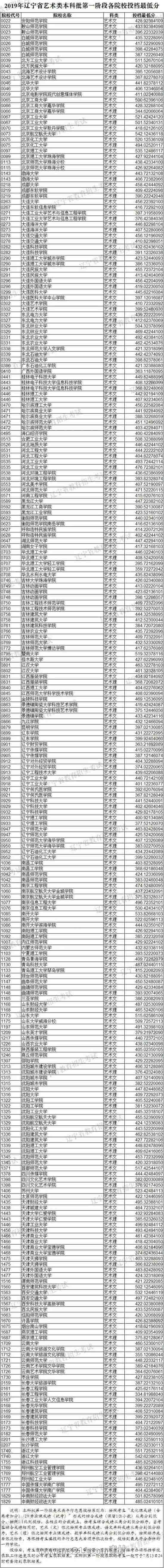 2019年遼寧省藝術(shù)類本科批第一階段各院校投檔最低分(美術(shù)類統(tǒng)考)
