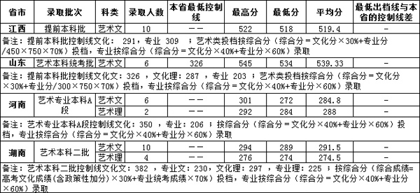 藝術(shù)類本科招生專業(yè)含環(huán)境設(shè)計(jì)、視覺傳達(dá)設(shè)計(jì)專業(yè),考生須取得相應(yīng)省(自治區(qū))專業(yè)統(tǒng)考合格證,高考文化成績(jī)達(dá)到我校在生源所在省(自治區(qū))的同批次錄取控制分?jǐn)?shù)線,且填報(bào)我校志愿方可被我校錄取。我校根據(jù)考生報(bào)考志愿,按綜合分(綜合分=文化考試成績(jī)×40 % +專業(yè)考試成績(jī)×60 %)從高分到低分擇優(yōu)錄取,同等條件下優(yōu)先錄取文化考試成績(jī)高的考生(文化分相等,則按語文、數(shù)學(xué)、英語單科成績(jī)排序高者優(yōu)先)。如生源所在省(自治區(qū))招生政策有特殊規(guī)定則以該省(自治區(qū))政策為準(zhǔn)。