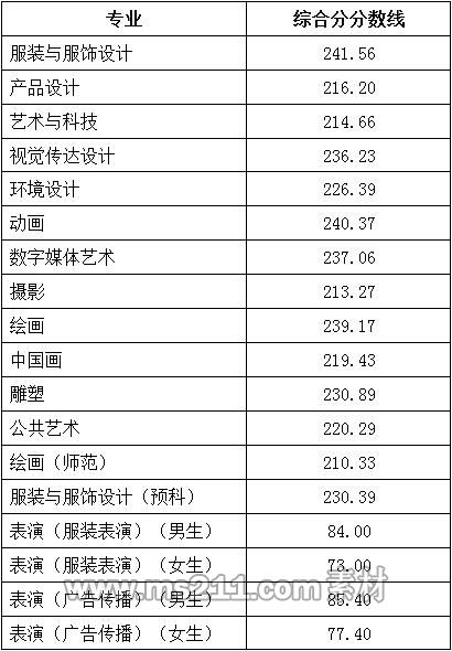 2.服裝與服飾設(shè)計專業(yè)、產(chǎn)品設(shè)計專業(yè)、藝術(shù)與科技專業(yè)、視覺傳達設(shè)計專業(yè)、環(huán)境設(shè)計專業(yè)、動畫專業(yè)、數(shù)字媒體藝術(shù)專業(yè)、攝影專業(yè)、繪畫專業(yè)、中國畫專業(yè)、雕塑專業(yè)、公共藝術(shù)專業(yè)為生源省份藝術(shù)本科錄取控制分數(shù)線,并且要求外語科目成績不得低于60分(150分制)。