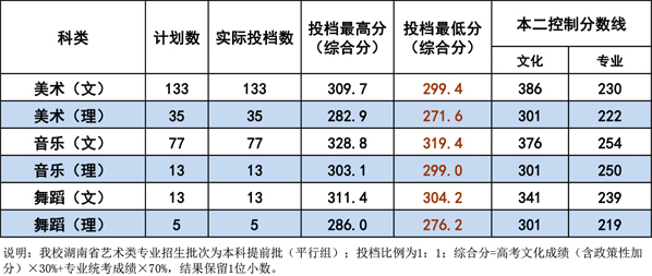 衡陽師范學(xué)院2020年省外藝術(shù)類本科專業(yè)錄取分數(shù)線(暫未公布)