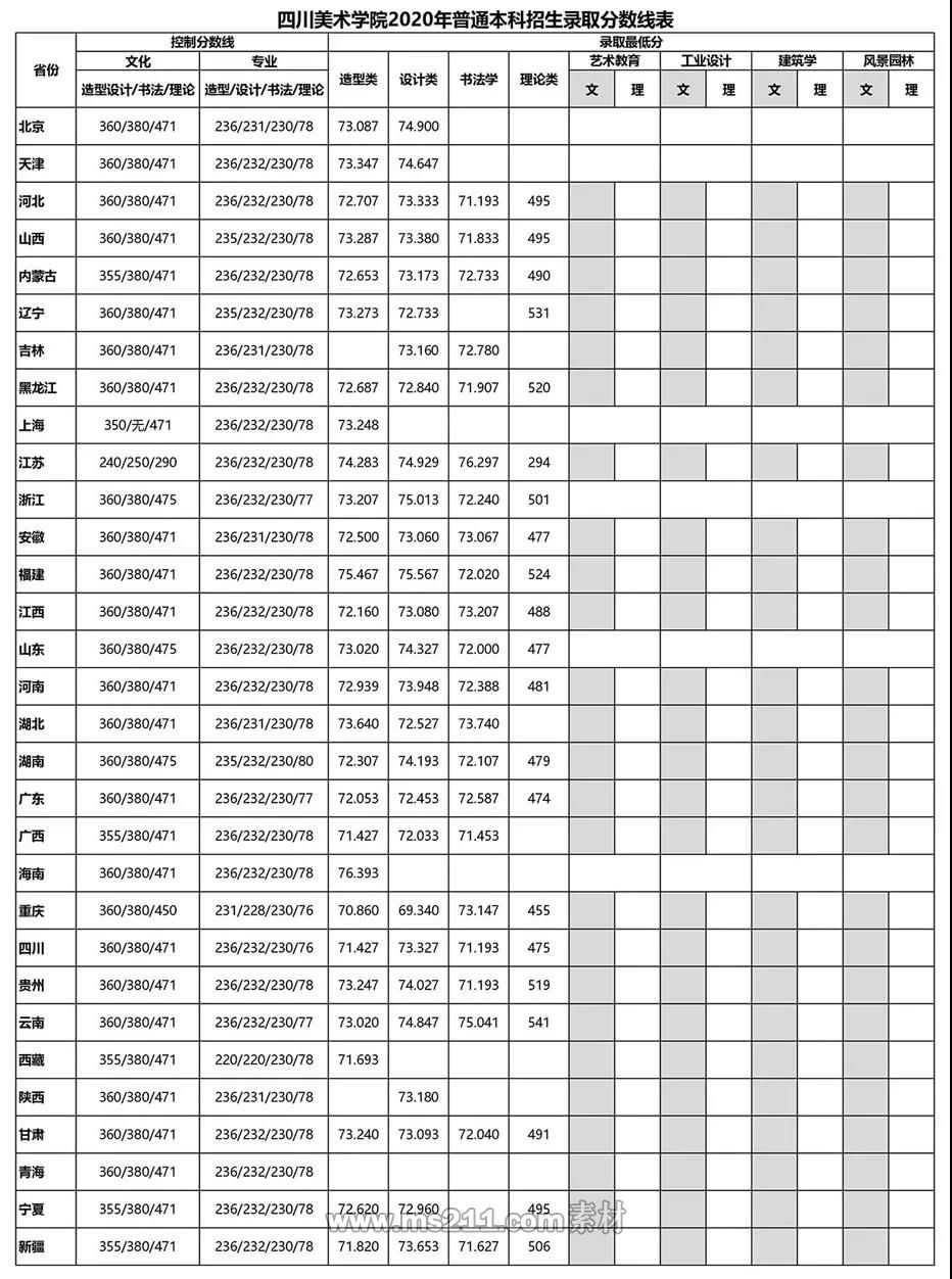 魯迅美術(shù)學(xué)院2020年本科招生錄取分?jǐn)?shù)線