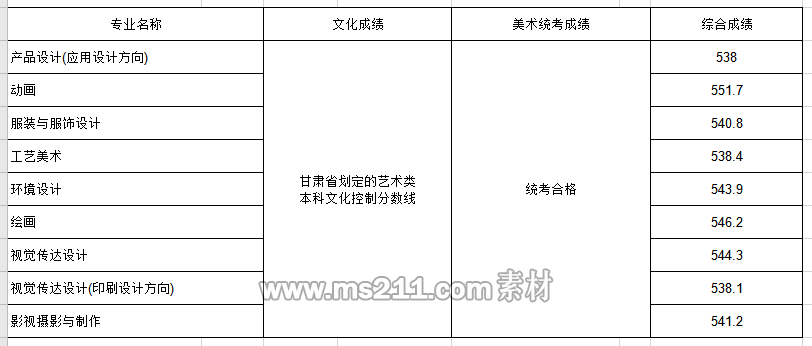 2020年省外分省計(jì)劃各專業(yè)錄取分?jǐn)?shù)線(甘肅):