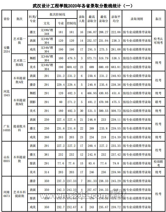 附件:武漢設(shè)計(jì)工程學(xué)院2020年藝術(shù)類校考專業(yè)與合格線