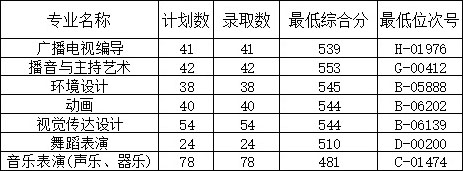 我院2020年在江西藝術(shù)類招生錄取工作已于近日順利完成。該批次設(shè)有播音與主持藝術(shù)、廣播電視編導(dǎo)、舞蹈表演及美術(shù)類三個(gè)招生專業(yè)。其中,播音與主持藝術(shù)專業(yè)招生計(jì)劃3人,實(shí)際錄取3人,錄取最低分497.57分(綜合分);廣播電視編導(dǎo)專業(yè)招生計(jì)劃3人,實(shí)際錄取3人,錄取最低分504.02分(綜合分);舞蹈表演專業(yè)招生計(jì)劃2人,實(shí)際錄取2人,錄取最低分121.43分(專業(yè)分);動(dòng)畫專業(yè)招生計(jì)劃2人,實(shí)際錄取2人,錄取最低分486.76分(綜合分)。環(huán)境設(shè)計(jì)專業(yè)招生計(jì)劃2人,實(shí)際錄取2人,錄取最低分490.76分(綜合分)。視覺(jué)傳達(dá)設(shè)計(jì)專業(yè)招生計(jì)劃2人,實(shí)際錄取2人,錄取最低分488.38分(綜合分)。