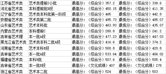 備注:吉林省本科一批B段為書法學(xué)專業(yè),其余省份藝術(shù)類專業(yè)均為美術(shù)類。