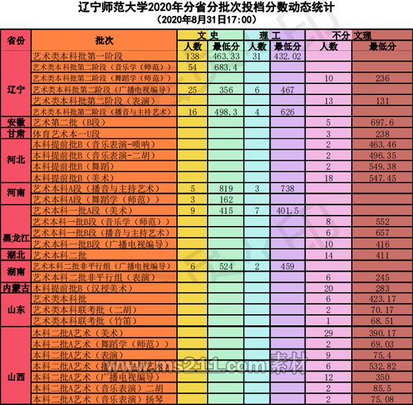 備注:遼寧省本科批第一階段為美術類專業(yè),安徽省藝術第二批(B)段為播音與主持藝術專業(yè),甘肅省體育藝術本一U段為舞蹈學(師范),湖北省藝術本科二批為美術類專業(yè),山東省藝術類本科批為美術類專業(yè)。