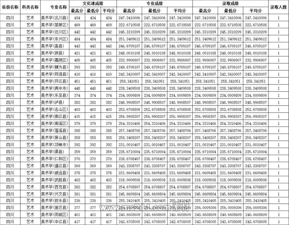 四川師范大學(xué)2020年省外藝術(shù)類本科錄取統(tǒng)計