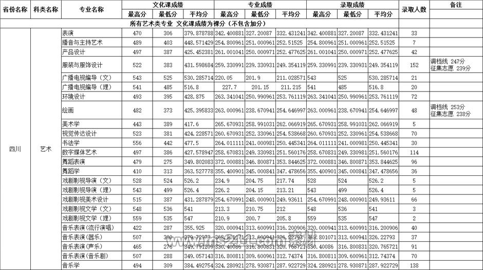 四川師范大學(xué)2020年四川省藝術(shù)類本科錄取統(tǒng)計