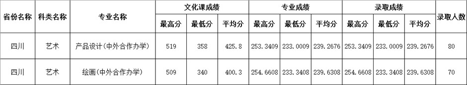 四川師范大學(xué)2020年四川省藝術(shù)類本科(中外合作辦學(xué))錄取統(tǒng)計