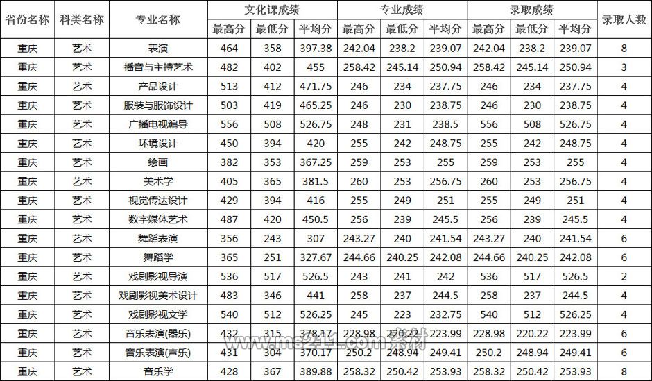 四川師范大學(xué)2020年四川省藝術(shù)類本科(中外合作辦學(xué))錄取統(tǒng)計