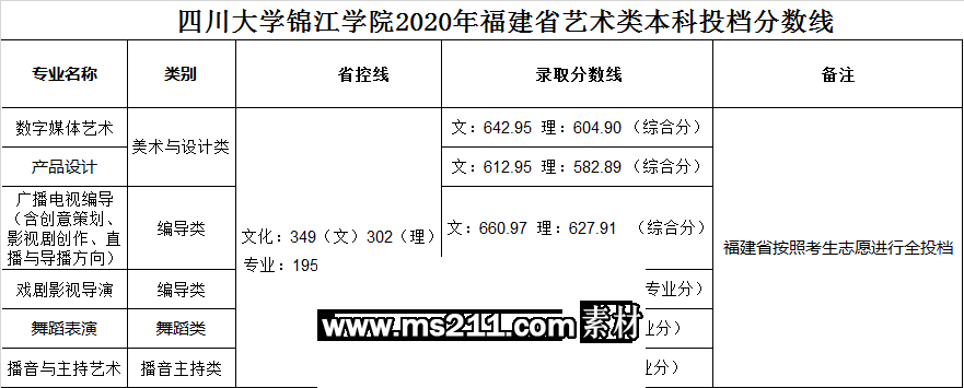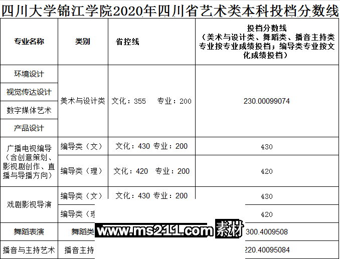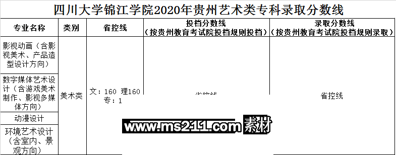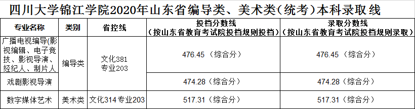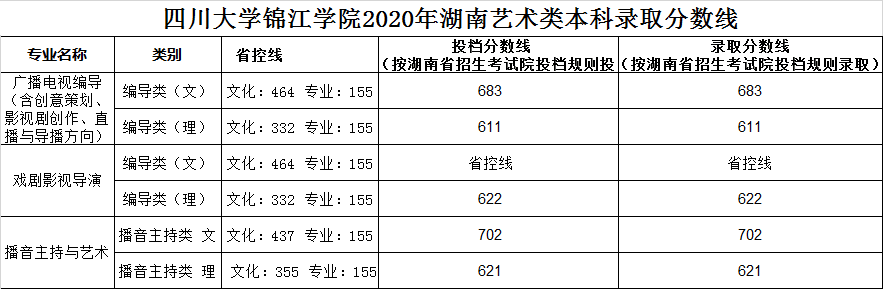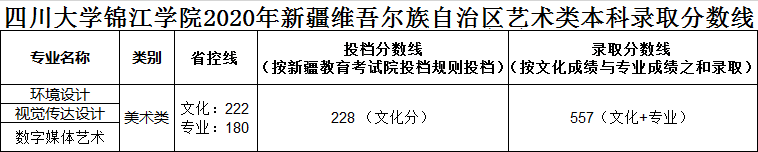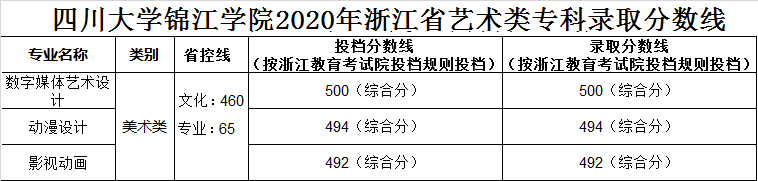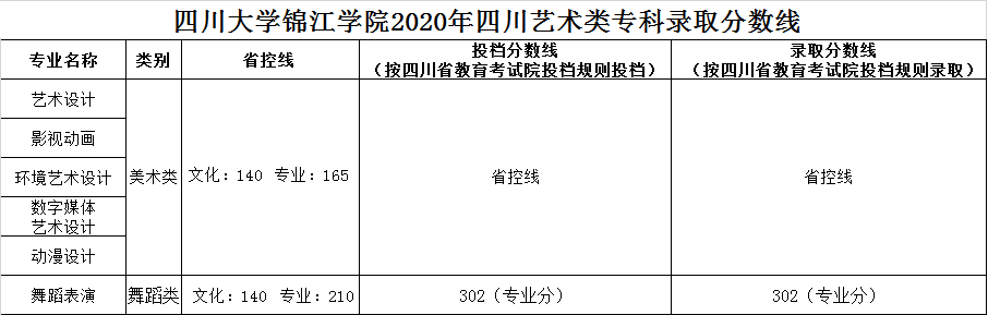 美術與設計類專業(yè),四川省按專業(yè)成績由高分到低分擇優(yōu)錄取,專業(yè)分數(shù)相同時優(yōu)先錄取文化成績較高的考生。其他省份按文化成績與專業(yè)成績之和由高分到低分擇優(yōu)錄取,總分相同時優(yōu)先錄取專業(yè)成績較高的考生。