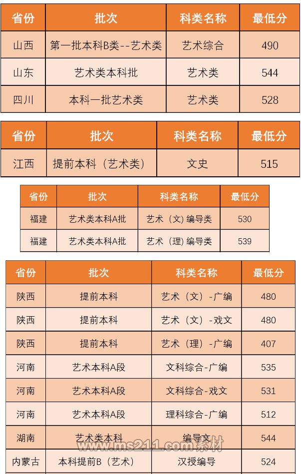 藝術類專業(yè)錄取規(guī)則:采用生源省份統(tǒng)考成績,不另行組織校考。