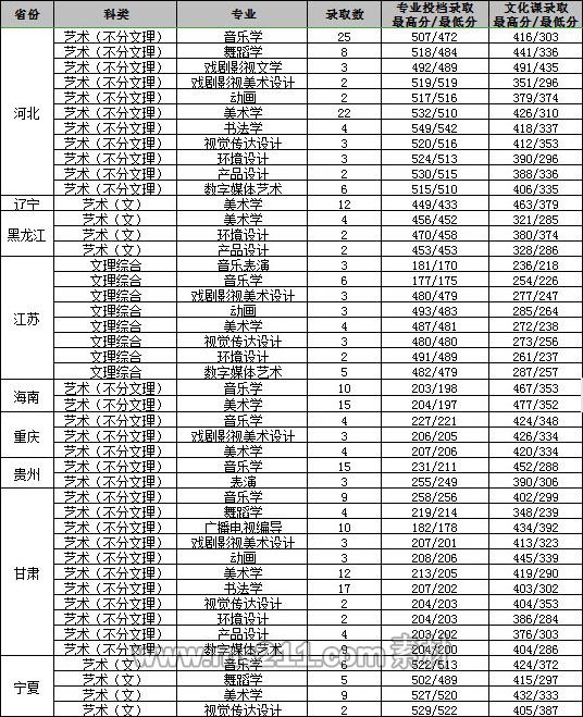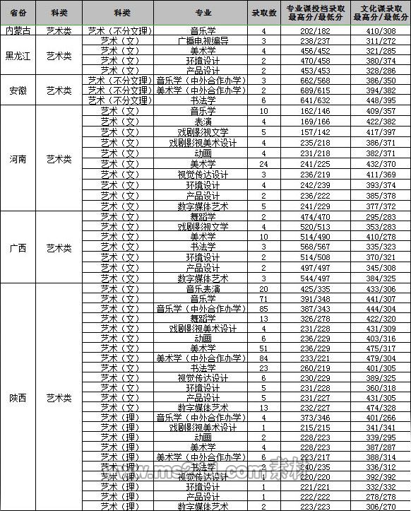 藝術(shù)類專業(yè)投檔方式及比例按照教育部相關(guān)政策和相關(guān)省區(qū)招生主管部門的規(guī)定執(zhí)行。進(jìn)檔的省外各藝術(shù)類專業(yè)考生在文化課成績(jī)達(dá)到所在省區(qū)規(guī)定的分?jǐn)?shù)線后,按相應(yīng)專業(yè)統(tǒng)考或聯(lián)考成績(jī)由高到低擇優(yōu)錄取;陜西省的藝術(shù)類專業(yè)錄取辦法按照陜西省教育考試院《關(guān)于做好2020年陜西省普通高等學(xué)校藝術(shù)類專業(yè)考試招生工作的通知》文件規(guī)定執(zhí)行。錄取中若出現(xiàn)專業(yè)課成績(jī)相同,按文化課成績(jī)從高到低擇優(yōu)錄取;文化課和專業(yè)課成績(jī)都相同的,則分別按語文、數(shù)學(xué)、英語、綜合的單科成績(jī)由高到低擇優(yōu)錄取。
