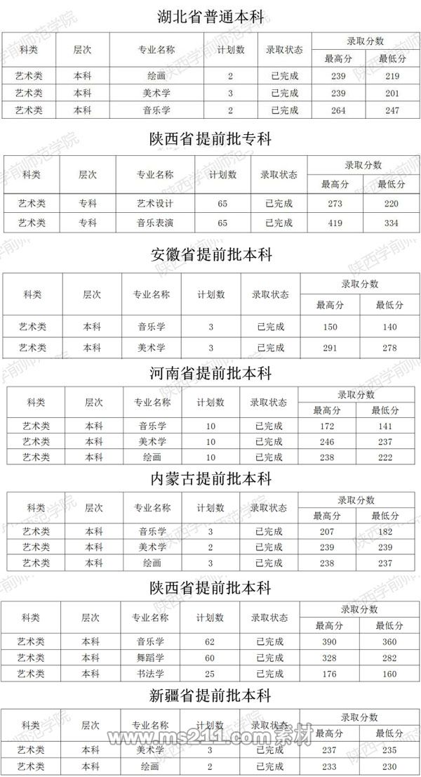 對(duì)報(bào)考藝術(shù)類專業(yè)的陜西省考生,“美術(shù)類”專業(yè)課成績(jī)以省統(tǒng)考成績(jī)?yōu)闇?zhǔn),“音樂類”以省聯(lián)考成績(jī)?yōu)闇?zhǔn),“書法學(xué)”專業(yè)課成績(jī)以??汲煽?jī)?yōu)闇?zhǔn)。對(duì)報(bào)考藝術(shù)類專業(yè)的其他省、自治區(qū)、直轄市考生,專業(yè)課成績(jī)以本省、自治區(qū)、直轄市統(tǒng)考或聯(lián)考成績(jī)?yōu)闇?zhǔn)。在專業(yè)課和文化課考試成績(jī)均達(dá)到規(guī)定分?jǐn)?shù)線條件進(jìn)檔考生,按照專業(yè)課考試成績(jī)從高到低排序錄取,如專業(yè)課成績(jī)相同時(shí)按文化課成績(jī)及位次排序錄取。
