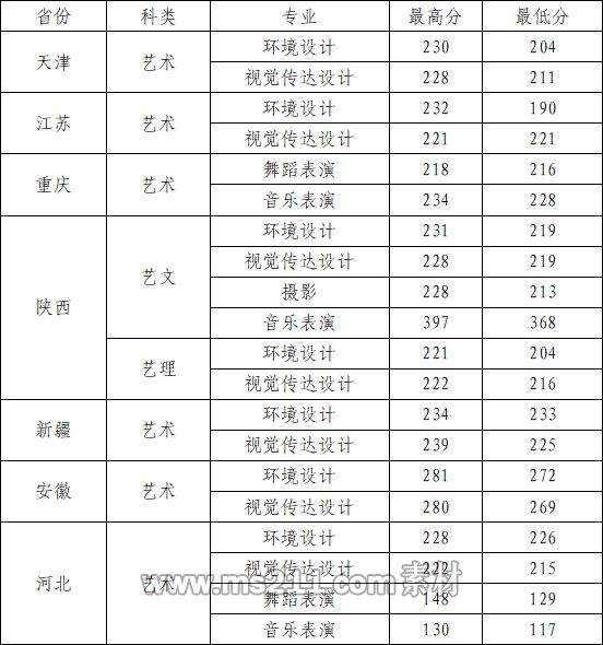 2020年西安建筑科技大學(xué)華清學(xué)院藝術(shù)類專業(yè)錄取分?jǐn)?shù)線