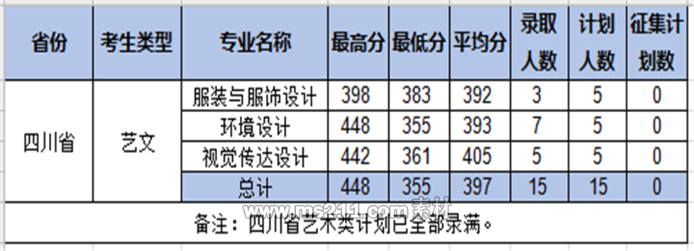 我院2020年四川省藝術(shù)類(lèi)第一次投檔完成,共 15個(gè)計(jì)劃,出檔15人,完成率為100%;按1:1出檔規(guī)則,各專(zhuān)業(yè)出檔分?jǐn)?shù)如下:
