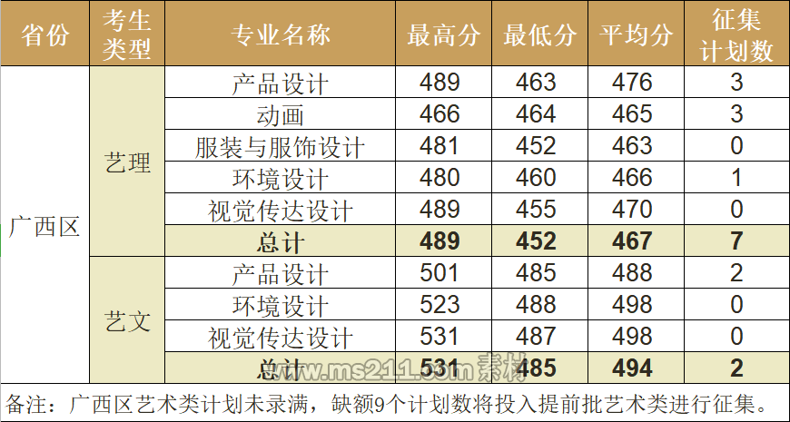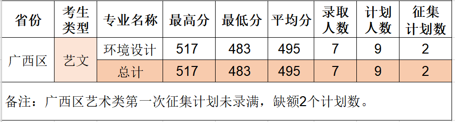 我院2020年廣西區(qū)藝術(shù)類第一次征集完成,出檔7人,按1:1出檔規(guī)則,各專業(yè)出檔分?jǐn)?shù)如下: