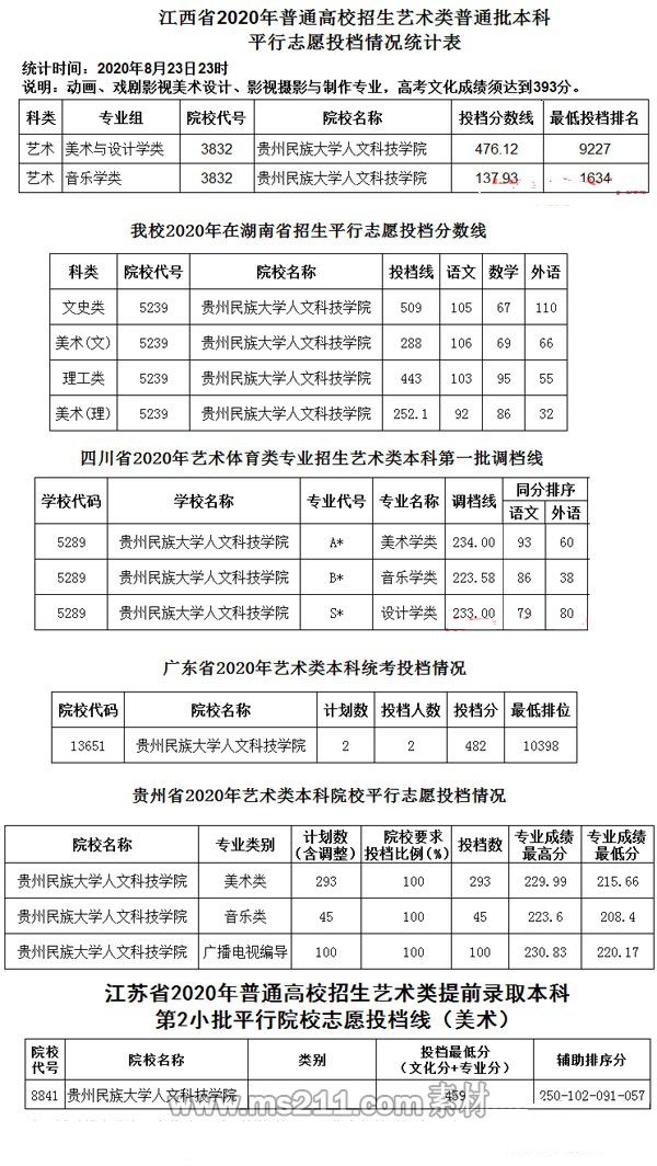 2020年貴州民族大學(xué)人文科技學(xué)院錄取分?jǐn)?shù)線