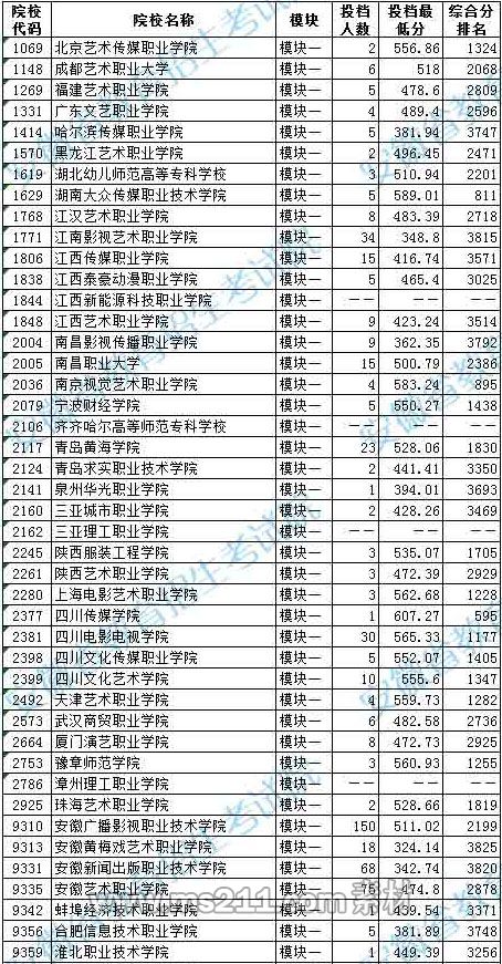 模塊一綜合分=專業(yè)成績(jī)÷統(tǒng)考專業(yè)滿分×300+文化成績(jī)÷文化滿分×700