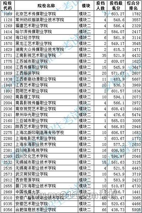 模塊二綜合分=專業(yè)成績(jī)÷統(tǒng)考專業(yè)滿分×300+文化成績(jī)÷文化滿分×700